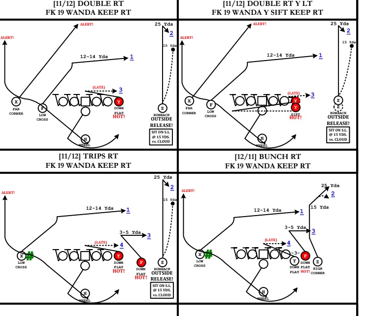 The progression is for a shallow cross as #1, then a crossing route instructed to run "back end line" as #2. The whirl route isn't even designated in the progression.
