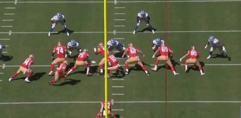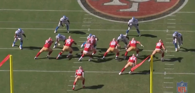 These blocks right here, this is the stuff that Trent Brown was incapable of doing, that helps make this run game go. When everyone does their job, this is what the Shanahan run game is supposed to look like.