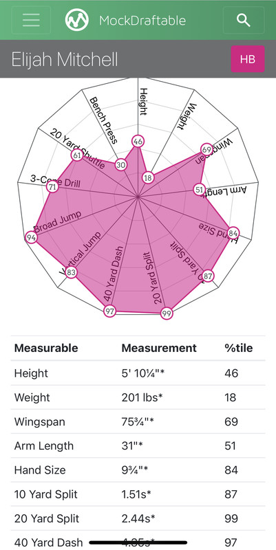 And supposedly was in the 4.4s and lost a little weight to pre-draft to get in the 4.3's.