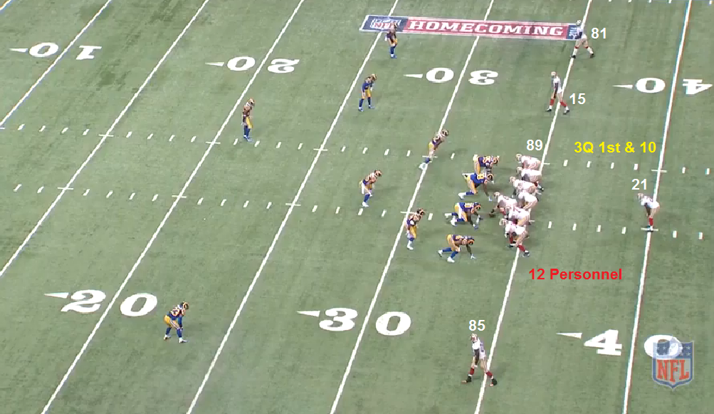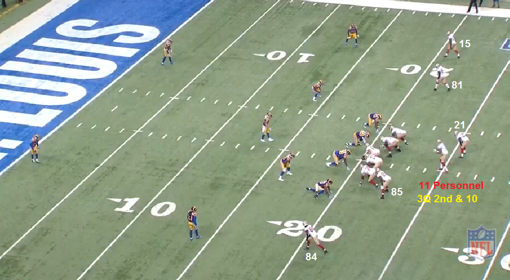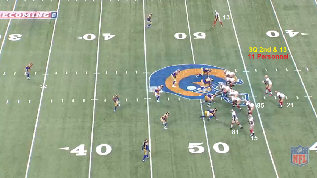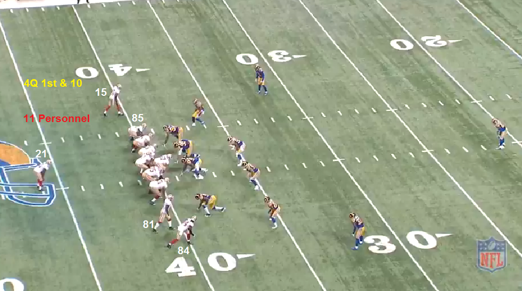 We get the first down and set up 1st and goal. Great call by G-Ro to catch St. Louis in over aggressive behavior.