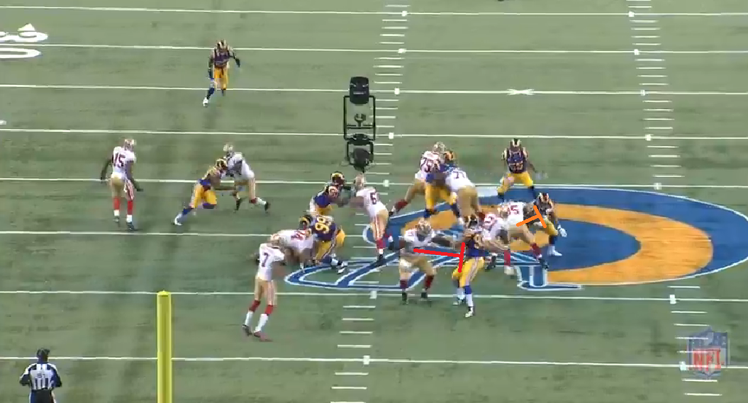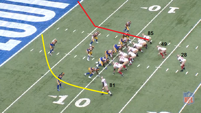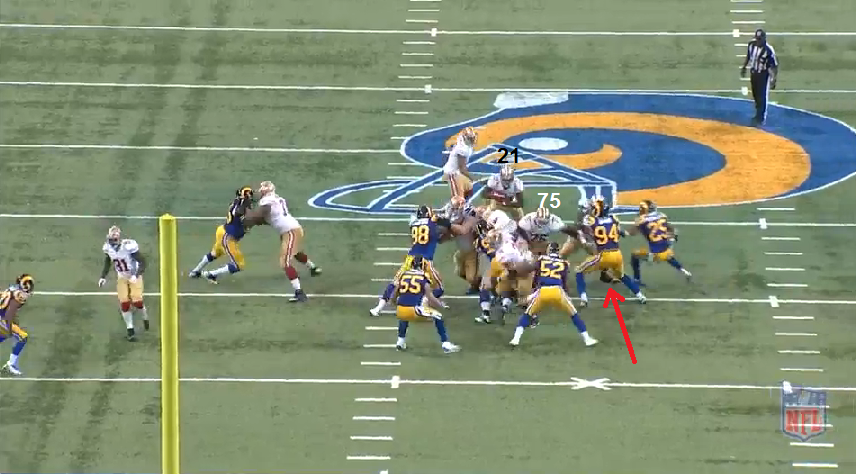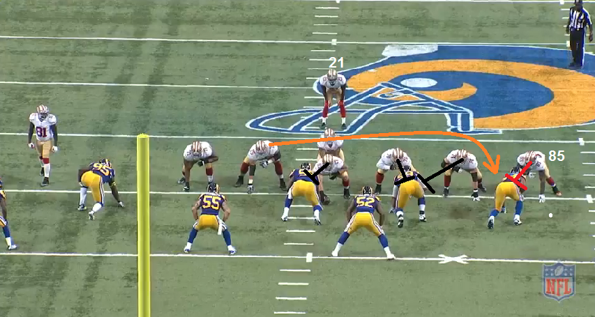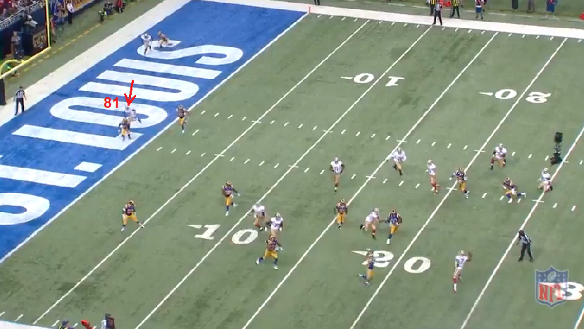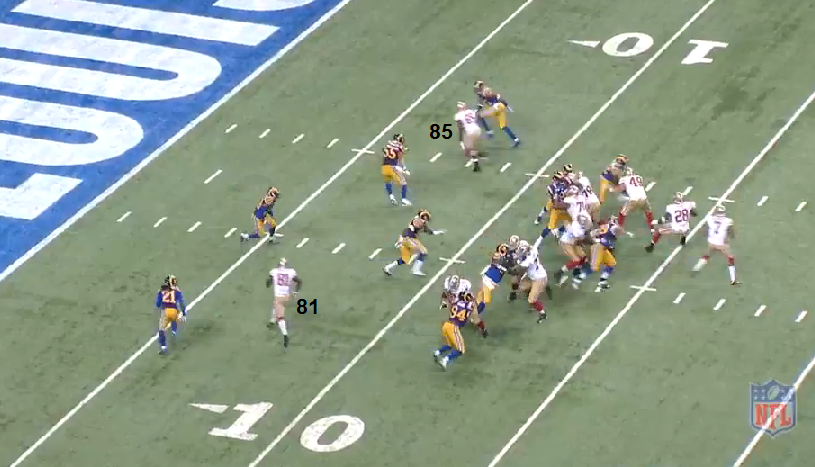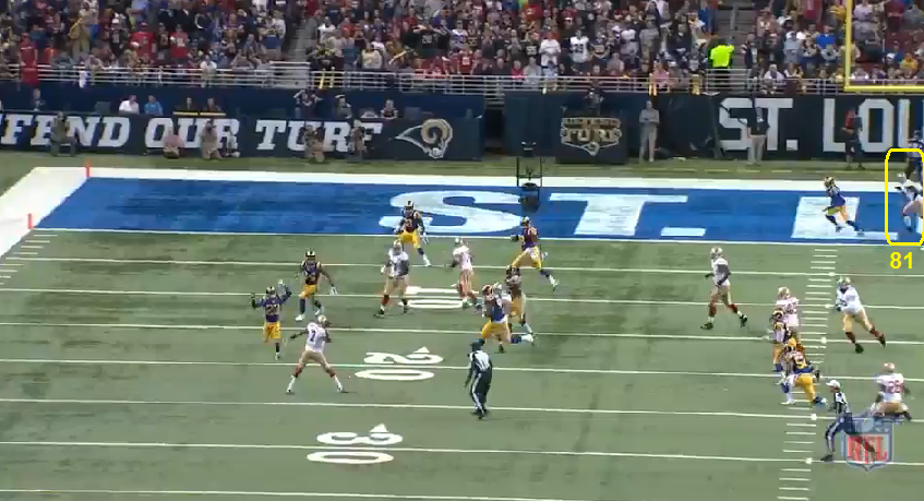 You see how aggressive the Rams were towards the run. All their LB's are occupied by the run fake.