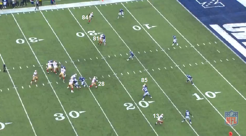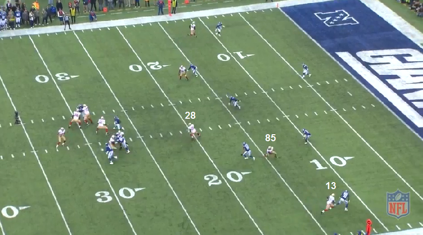 You see how open VD would've been(the corner couldn't see that CK was throwing - that's why he continued to run with Johnson and there's no way the LB stays with VD) and Hyde gets tackled immediately after catching the ball.
