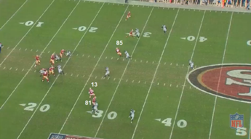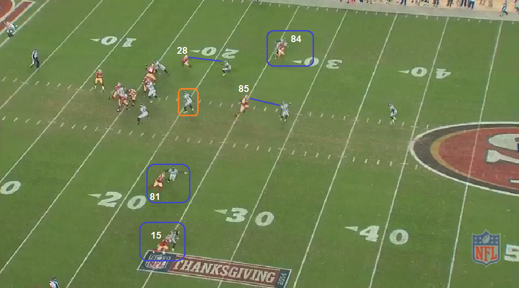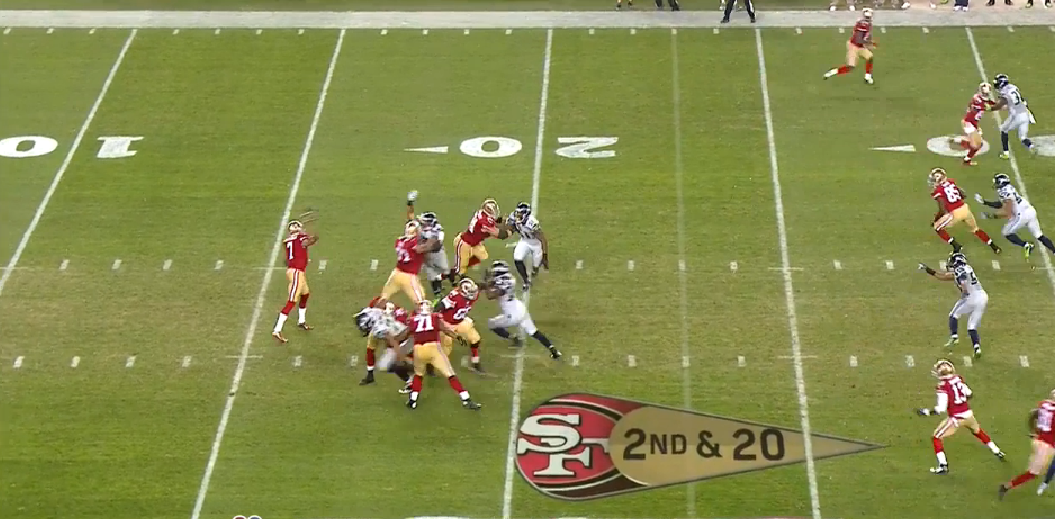 Just speculating on this one but there was another vantage point shown during the game (IIRC) in 4Q where it showed this play from behind CK so you could get an even better feel for what happened. Clearly, the route was not a full go-route and was a curl, hence why CK is still throwing to Lloyd WITH Lloyd trailing Sherman the whole way. But from the back vantage point, the ball is already in the air as Lloyd is breaking out (head not turned around). It's probably on accuracy (long throw) but perhaps CK thought Lloyd would just drop down there vs. curl out to the sidelines...maybe a miscommunication or wrong route or right route and poor throw (poor mental decision + poor accuracy). It's hard to tell. Then again, his accuracy too was on-off all game as well.