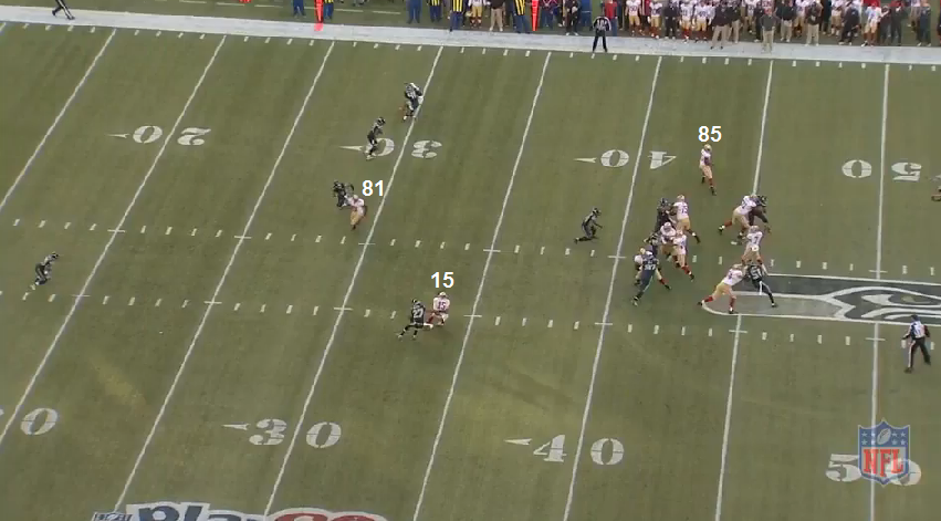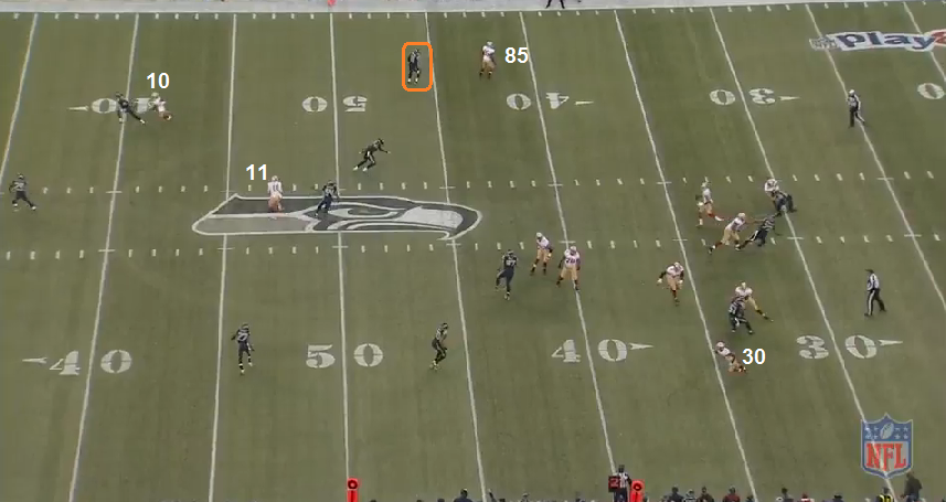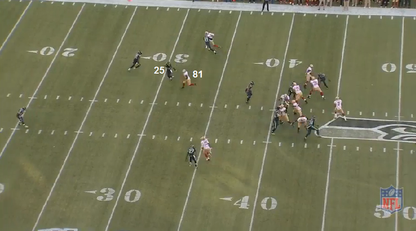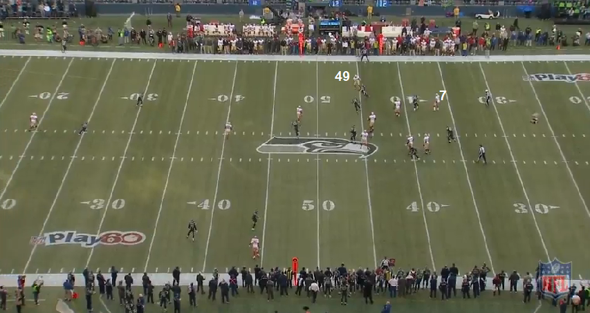 I think this is the play he is referring to. I was chronologically going through the game, but I wasn't planning on going into the 49ers' 4Q possessions anyway because the Moody personal foul call was horse poop and it was then I knew the game was over. But here it is.
