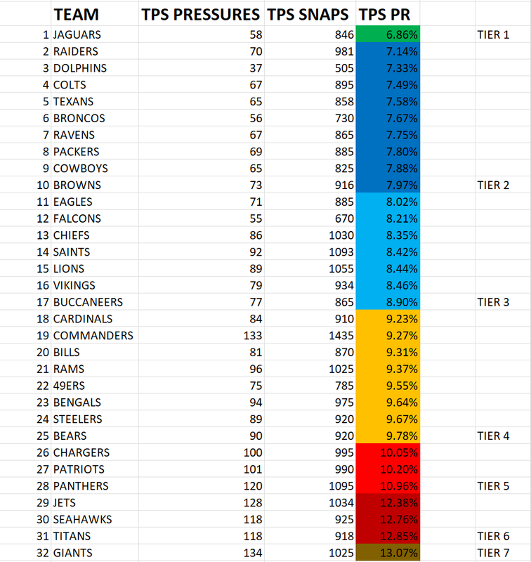 True Pass Set Pressure Rate rankings by True Pass Set Snaps.