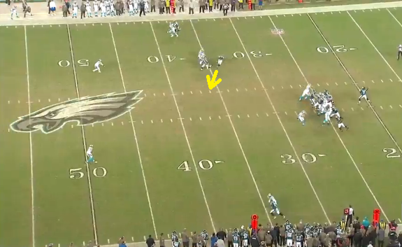 Yellow is easily schemed open against man coverage. Simple throw for RAC.