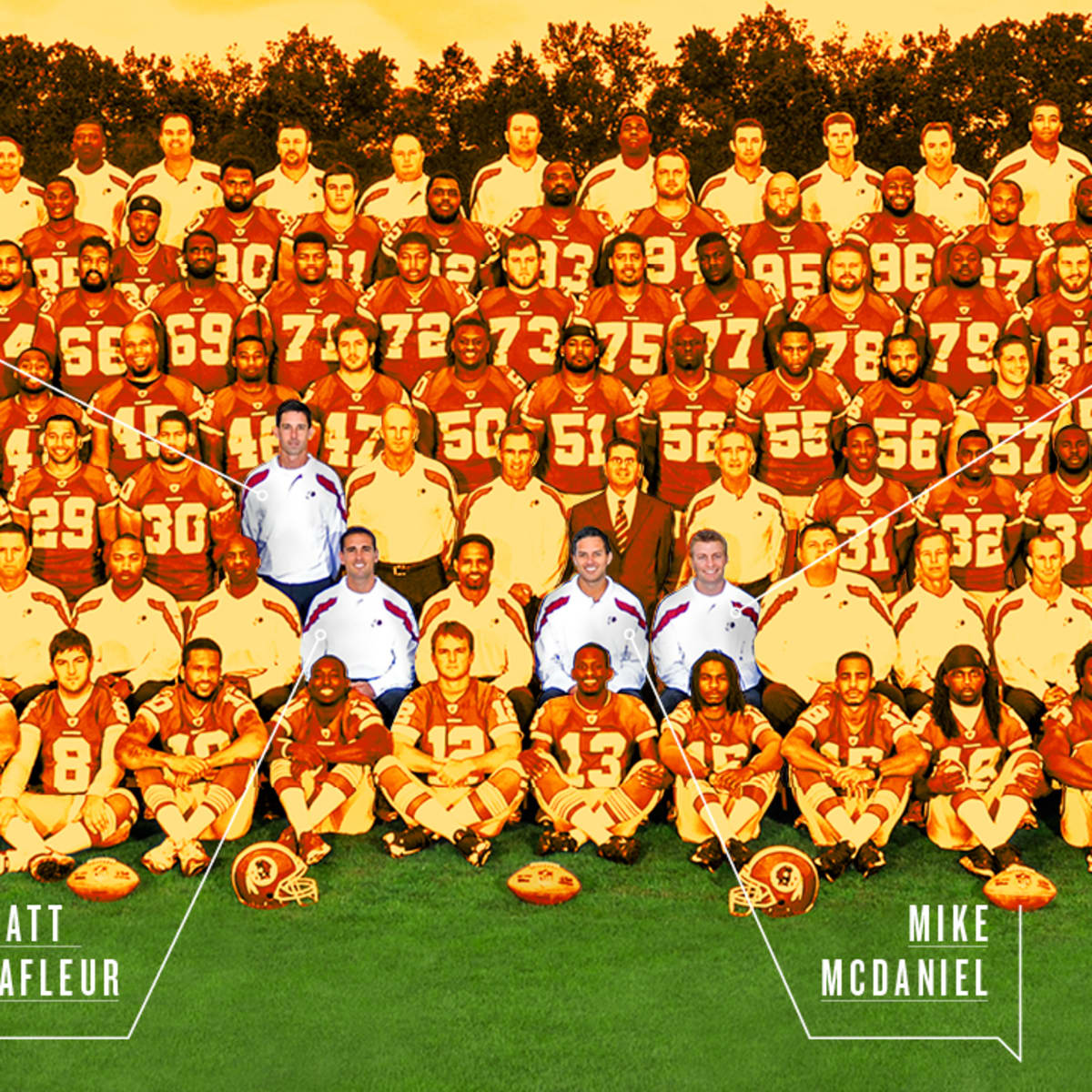 Quarterbacks coach Matt LaFleur worked with Kyle Shanahan in Houston and had only two years experience as an "offensive assistant" with the Texans prior to becoming the Redskins QB coach. Similarly, receivers coach Mike McDaniel was a lower-level assistant on the Texans staff before coming to Washington. Tight ends coach Sean McVay's only prior NFL experience to joining Washington came in 2008 as an offensive assistant in Tampa.