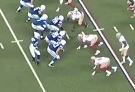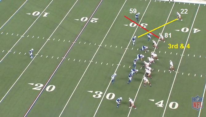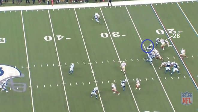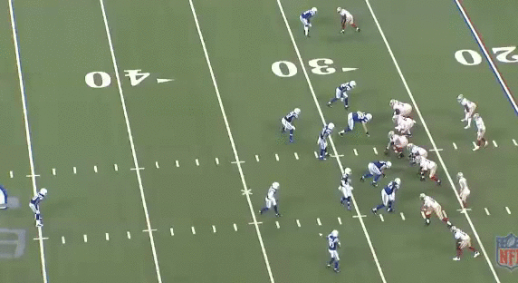 The safety on Kittle can attack downhill and easily stops Kittle. One more split second and Garcon is free, past the first down marker. Punt.
