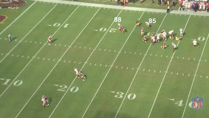 I really like this play. There's so much going on. We motion Kittle across the formation and it reveals zone coverage. They give this cover 6 look and the single side corner starts to bail before the snap, showing cover 4 but It's going to be cover 3 "buzz".