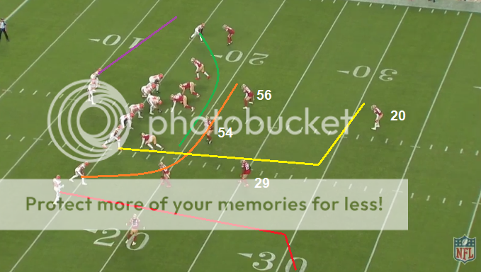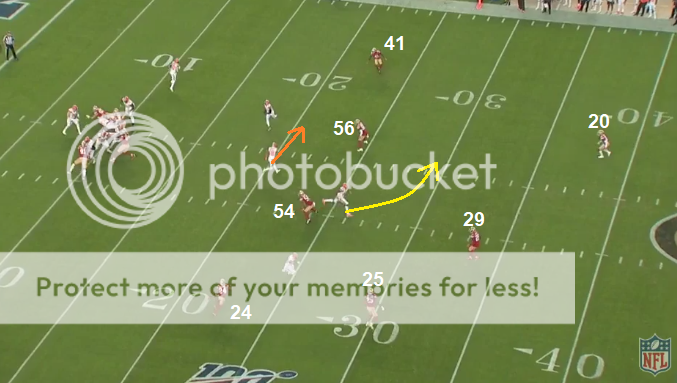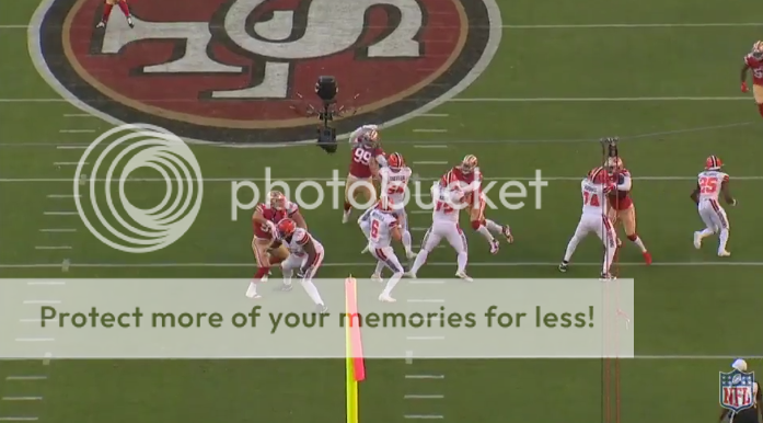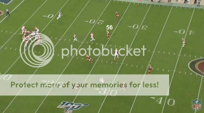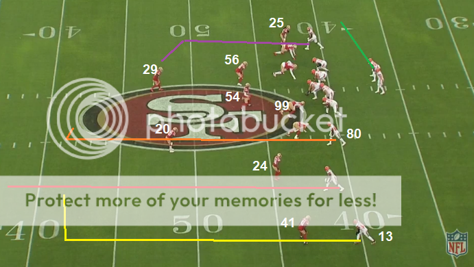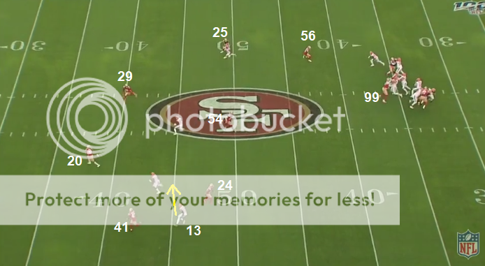 Red clears out for Yellow's (13, OBJ) Dig to work the area. The 49ers are playing some sort of combo coverage, and it's going to look really odd, but I think it's a variation of Cover3.