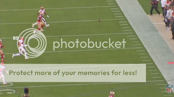 OBJ does have an open area, but Mayfield has bailed out of the pocket, which is his fallback instinct when he senses trouble whether real or not.