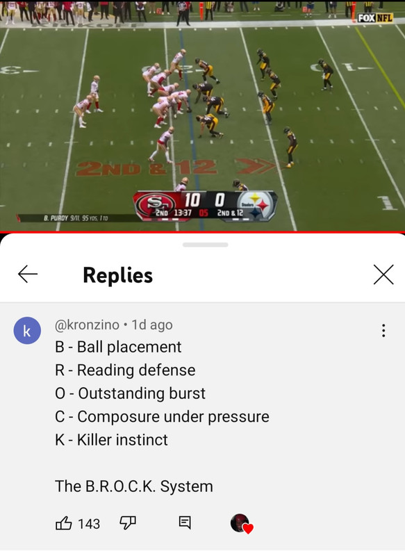 Same reason why Tom Brady kept winning SBs. I'm not saying Purdy is like Brady just yet, but there's certainly a processing upside that people don't think about when they judge a players perceived upside.