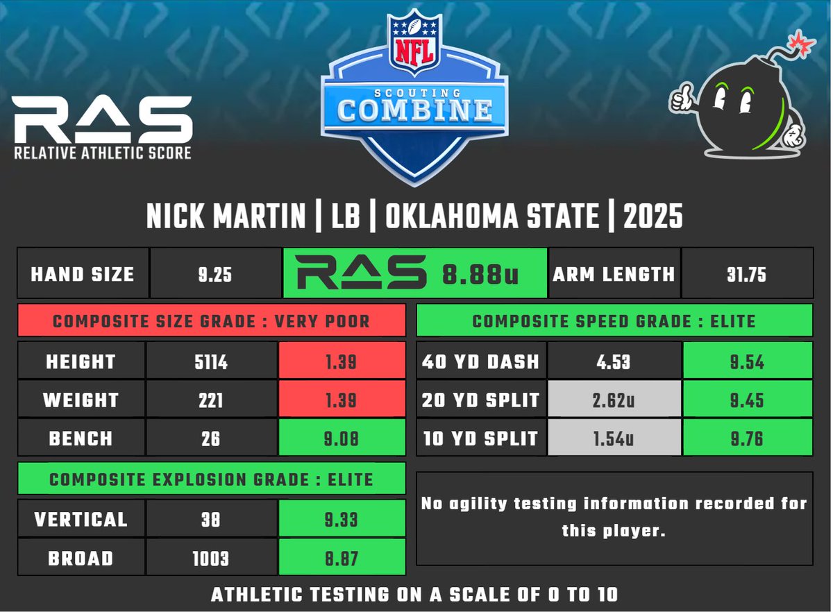 Thoroughly impressed with Oklahoma State LB Nick Martin (4).