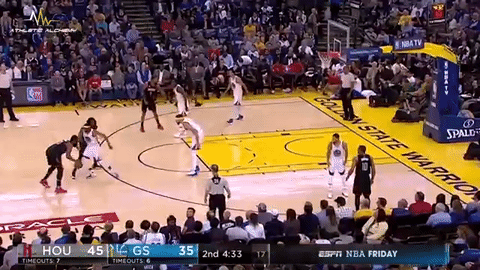 Just one more ... Harden tries to sell a foul that does not get called and then gets burned backdoor. That is some MVP defense there