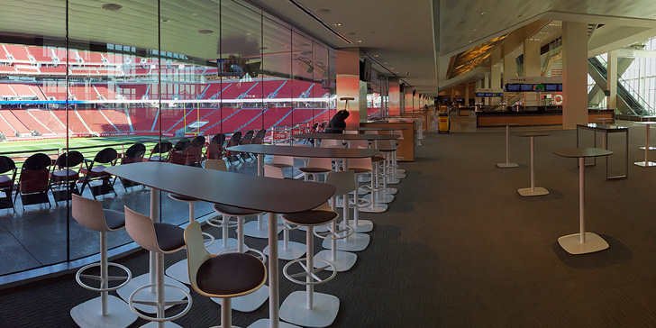 There are 10 clubs located within Levi's Stadium, with the largest being the United Club located on the 300 level of the Suite Tower. It runs the entire length of the field.